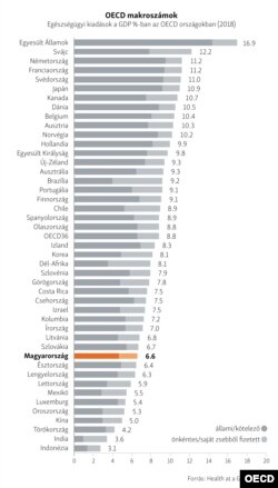 Az egészségügyi költés két részből áll: gyógyulásunkat részben az állam állja, részben mi, akik hálapénz, magánegészségügy, magánbiztosítás formájában saját zsebből is fizetünk érte. A GKI-nak hazai és nemzetközi adatokból készített tavalyi összegzése szerint Magyarországon 2016-ban a magánkiadások az összes egészségügyi kiadás mintegy 30%-át tették ki. Ez 2 százalékponttal magasabb, mint 2002-ben volt, és a legmagasabb a V4 országok és Ausztria közül (a járulék és adófizetést nem számítva). Kb. egyharmaddal lemaradva következik Lengyelország, Szlovákia és Csehország.