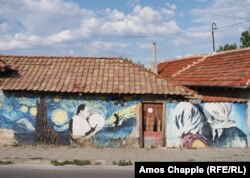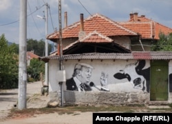 A fent látható ház tulajdonosa egy Sztálin-portrét kért, amelyet azóta vörös festékkel csúfítottak el. Az ő alakjához, ahogy épp egy kecskén száll szembe az egykori szovjet diktátorral, nem nyúltak hozzá.