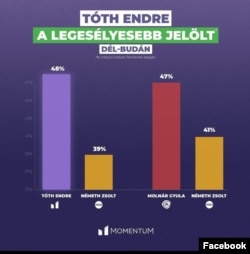 Tóth Endre előnye a valósnál lényegesen nagyobbnak tűnik, és nem derül ki, hogy Németh Zsolt miért szerepel két értékkel. Ha két külön párosítást akartak bemutatni, arra kevésbé lett volna megtévesztő két külön ábra egymás mellett, és nem vetődhetne fel, hogy Tóth Endre alig vezet Molnár Gyula előtt, de a két fideszes Németh Zsolt, ha összeadná a szavazatait, akkor se nyernének.