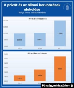 A Pénzügyminisztérium ábrája azt mutatja, mintha kétszeresére nőnének a forintban számolt beruházások egy év alatt. Miközben a valóságban nagyjából tizedével nőhetnek a saját becsléseik alapján.