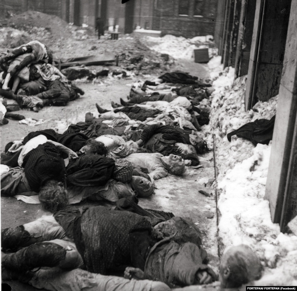 Holttestek a Dohány utcai zsinagóga udvarán, 1945