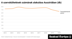 Az élő donoros szervátültetések – vagyis amikor egy családtag vagy barát ajánlja fel az egyik szervét – száma nem csökkent, 2019-ben és 2020-ban is harminc-harminc ilyen operációt végeztek el. Az elhunyt donorból történt szervátültetések száma azonban 403-ról 284-re csökkent Magyarországon, ami közel harmincszázalékos visszaesés.