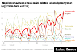 Az oltások beadását pedig már csak azért is jobb lenne minden korábbinál értelmesebben megszervezni, mert közben valóban drámaian emelkedik a járvány miatti magyar halottak száma.