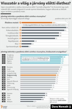 Az Economist indexe alapján a Magyarországénál lényegesen jobb átoltottsági adatokkal bíró Egyesült Királyságban vagy az Egyesült Államokban kevésbé tértek vissza a járváyn előtti életvitelhez, mint Magyarországon. Romániában vagy Ukrajnában viszont sokkal inkább.