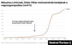 És persze vidéki polgármestereket sem. Mészáros Lőrinc gazdagodása mesébe illő. Orbán Viktor miniszterelnök jó barátja, a volt felcsúti polgármester, aki gázszerelőből lett az ország leggazdagabb embere. Vagyongyarapodása 2010-től indult, miután a Fidesz megnyerte a választásokat. Ekkor még csak egy cége volt, ma már megszámlálhatatlanul sok. Szinte nincs olyan gazdasági ágazat, ahol ne lenne jelen: a feldolgozóipartól a mezőgazdaságon át a szállodaiparig kiterjedt az érdekeltségi köre.