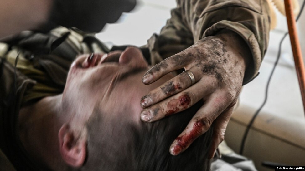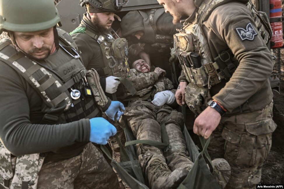 Sebesült ukrán katonát szállítanak el a Bahmut közeli frontvonalról március 23-án. Mindkét oldalon egyre súlyosabbak a veszteségek, de Ukrajna szárazföldi csapatainak parancsnoka, Olekszandr Szirszkij vezérezredes szerint Bahmutnál az oroszok „jelentős számú katonát veszítettek”
