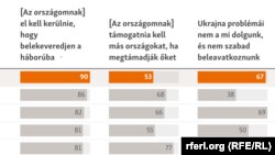 Kiugró volt, hogy magyarok mennyire tartanak attól, hogy az ország csapatokat küldjön Ukrajna megsegítésére. Ezt lényegében senki, alakosság három százaléka támogatta csak, a második helyezett Argentínában ez az arány nyolc százalék volt. A lengyeleknél 13, a svédeknél 22 százalék küldött volna már helyi katonákat az ukránok védelmére.