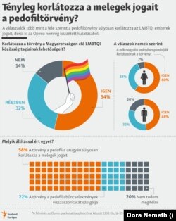 A kormánypárti sajtóban rendszeresek a pedofíliát a homoszexualitással összemosó cikkek, és azok az írások, amelyek azt állítják, hogy „Brüsszel” LMBT-aktivistákat akar az óvodákba küldeni. Ezek az írások azt sugallják, hogy káros a gyerekek fejlődésére, ha túl fiatalon szembesülnek a heteroszexuálistól eltérő szexuális irányultságokkal.