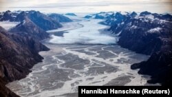 Olvad a jég a világ leggyorsabban mozgó és zsugorodó gleccserében, grönlandi Jakobshavn gleccserben.