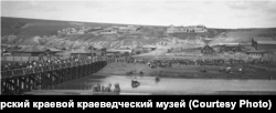 Az alábbi kép Mihail Csalnikov vasutas dolgozó temetésén készült Krasznojarszkban. A menet egy hosszú fahídon haladt át a Kacha folyó felett, és az emberek a koszorúk mellett forradalmi szövegeket tartalmazó transzparenseket vittek a kezükben. Wonago egyik legelső fotója volt ez itt.