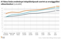 „A Fidesz pártlistája minden választáson a fővárosi kerületekben érte el a leggyengébb eredményt, a legkisebb, 500 fő alatti településeken pedig a legjobbat” – mondta lapunknak László Róbert, a Political Capital választási szakértője. László szerint általánosságban elmondható, hogy a Fidesz támogatottsága a település méretével fordítottan arányosan változik: a kisebb lakónépességű települések felé haladva nő a pártlistára leadott szavazatok részaránya.