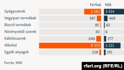 Az alkoholmérgezés inkább a férfiakra jellemző, míg a gyógyszermérgezés a nőkre. A motiváció is gyakran eltérő, a magyarok ugyanis jellemzően élvezeti okból isszák magukat betegre, míg az összes gyógyszermérgezés kétharmada öngyilkossági kísérlethez kapcsolódott.