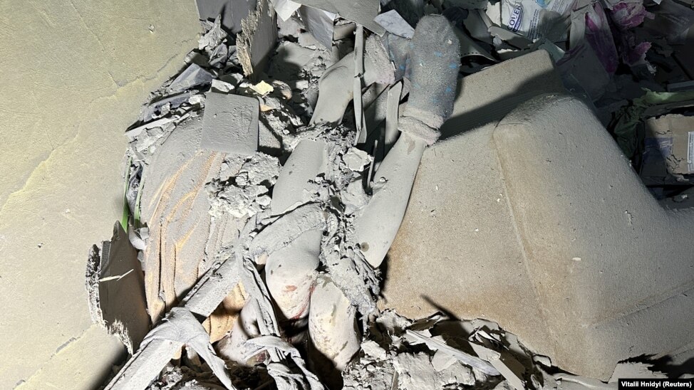 Egy harkivi holtteste az egyik, orosz drónok által célba vett épület romjaiban 2024. április 4-én. Egy beszámoló szerint a mentőalakulatok legalább egy órán át nem tudtak dolgozni, mert féltek a további csapásoktól